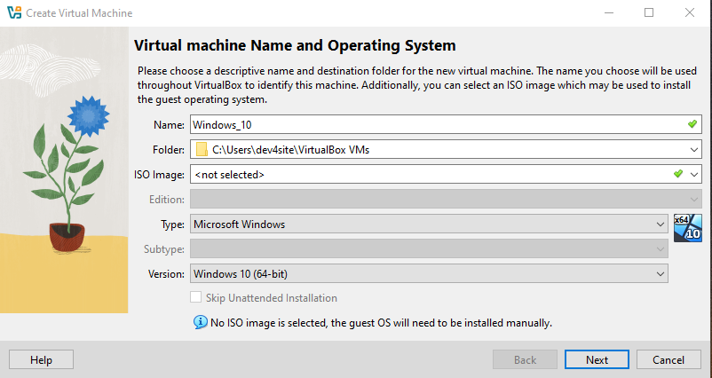 Name: Nama mesin virtual (misalnya: Windows 10 Preview)