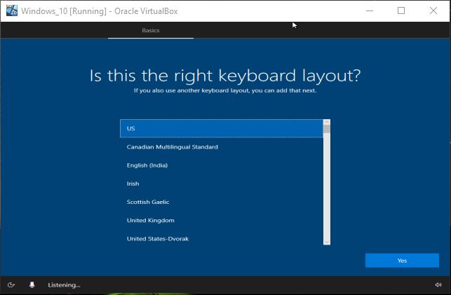 Lanjut Pilih Layout Keyboard "US" Klik Yes..