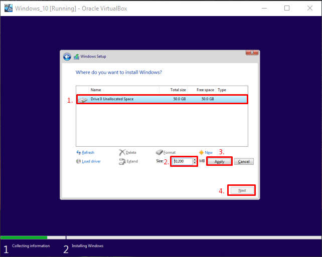 Langkah 5: Tentukan Lokasi dan Ukuran Hard Disk