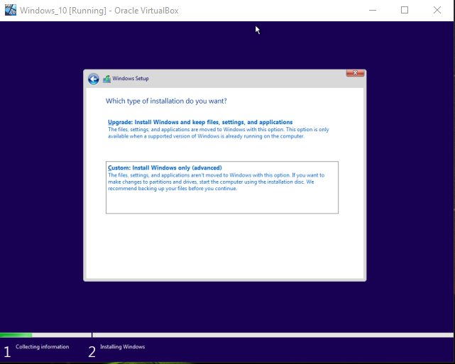 Custom (advanced) – Untuk instalasi baru (disarankan)