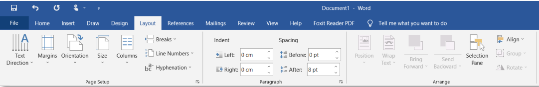 a) Klik Tab Layout → Paragraph → Indents and Spacing