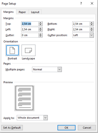 Digunakan untuk menentukan jenis kertas serta batas atas, bawah, kiri, dan kanan pengetikan maupun pencetakan.