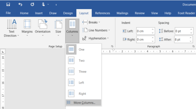 b) Klik Tab Page Layout, klik Columns → More Columns