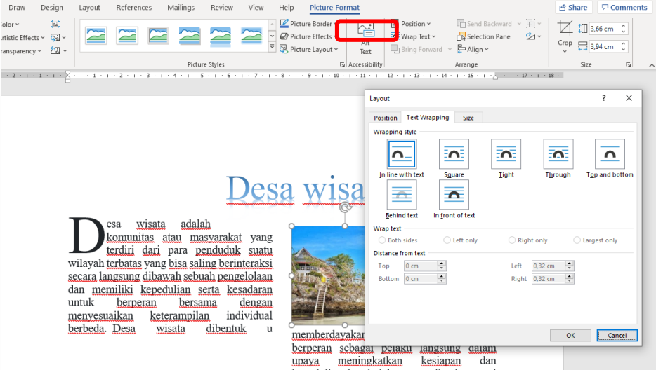 d) Klik kanan pada gambar → pilih Layout Options, dengan pilihan: