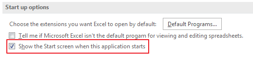 Pada Microsoft Office 2013, Start Screen akan muncul secara otomatis saat Anda menjalankan Excel. Jika Anda lebih suka langsung diarahkan ke Blank Workbook, fitur ini dapat dinonaktifkan dengan langkah berikut:
