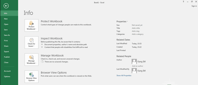 Tampilan Backstage View dapat diakses dengan mengeklik menu File yang terletak di sebelah kiri tab Home pada Ribbon. Fitur ini mulai diperkenalkan sejak versi Microsoft Excel 2010. Di dalam Backstage View, Anda akan menemukan berbagai informasi rinci terkait file yang sedang dibuka, serta menu Options untuk melakukan pengaturan konfigurasi Excel secara menyeluruh.